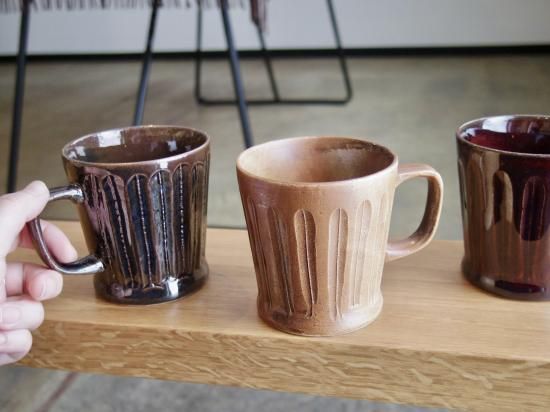 土が柔らかいうちに道具を使い、職人が手作業で削りつくりだすクラフト感が特徴です。